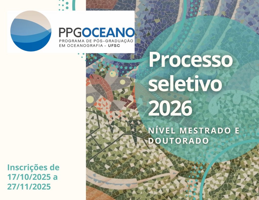 O Programa de Pós-Graduação em Oceanografia torna público o edital de seleção e admissão de discentes para os Cursos de Mestrado e de Doutorado em Oceanografia para o ano letivo de 2026.
